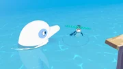 Wal in NotZoom, der weiße Delfin, hat zwei Wale getroffen und kommuniziert mit ihnen. Sie suchen ihr Junges, und Zoom kann ihnen dabei helfen.Bild: © ZDF und c Media Valley/Marzipan Films/TF1/Gaumont Animation - 2015