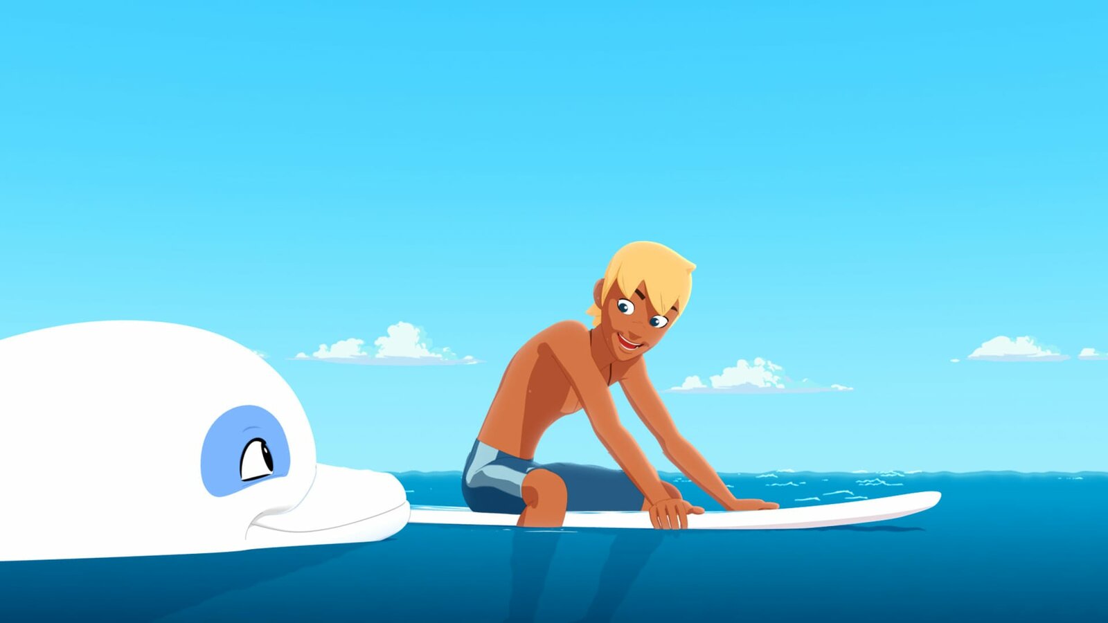 Die Prinzessin des MeeresDer weiße Delfin Zoom freut sich. Er hat am Ufer seinen Freund Yann entdeckt. Er wird ihn zu Yanns kleiner Schwester Marina führen, die sich davongeschlichen hat, um eine Meerjungfrau zu finden.Bild: © ZDF/Media Valley/Marzipan Films/TF1/Gaumont Animation