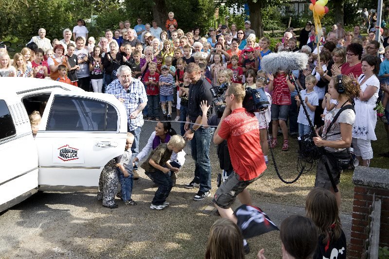 Folge 82Mit einer großen Limousine wird die siebenköpfige Familie zu ihrem neuen Zuhause gefahren. Die ganze Nachbarschaft sowie das Zuhause im Glück-Team nimmt sie herzlich in Empfang.Mit einer groüen Limousine wird die siebenköpfige Familie zu ihrem neuen Zuhause gefahren. Die ganze Nachbarschaft sowie das Zuhause im Glück-Team nimmt sie herzlich in Empfang.Bild: © RTL II