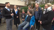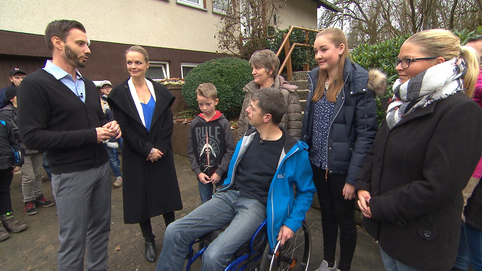 Ein behindertengerechtes Zuhause für Sabine und OlafExpertin Eva Brenner (2.v.li.) und das gesamte Zuhause im Glück-Team begrüssen Olaf und Sabine und deren KinderBild: © RTL II