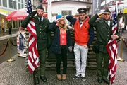 BerlinDie Reporter André Gatzke (Mitte, rechts) und Esther Brandt (Mitte, links) in Berlin am Checkpoint Charlie.Bild: © WDR/WDR/tvision