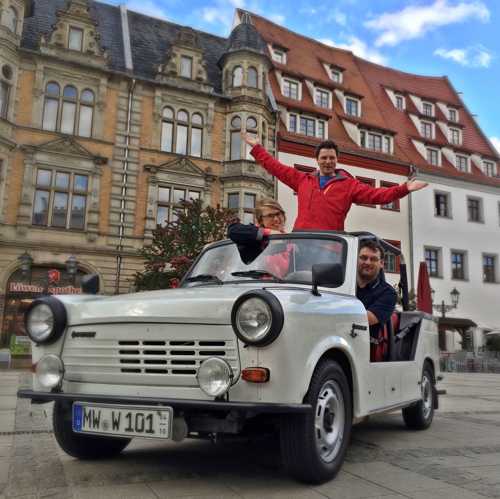 SachsenWDR Fernsehen 2 DURCH DEUTSCHLAND, "Sachsen", am Mittwoch (15.07.15) um 15:00 Uhr. Unterwegs in Sachsen: Die Reporter Esther Brandt (l) und André Gatzke (M) treffen in Zwickau u.a. Trabbi-Fans.Bild: © WDR/tvision