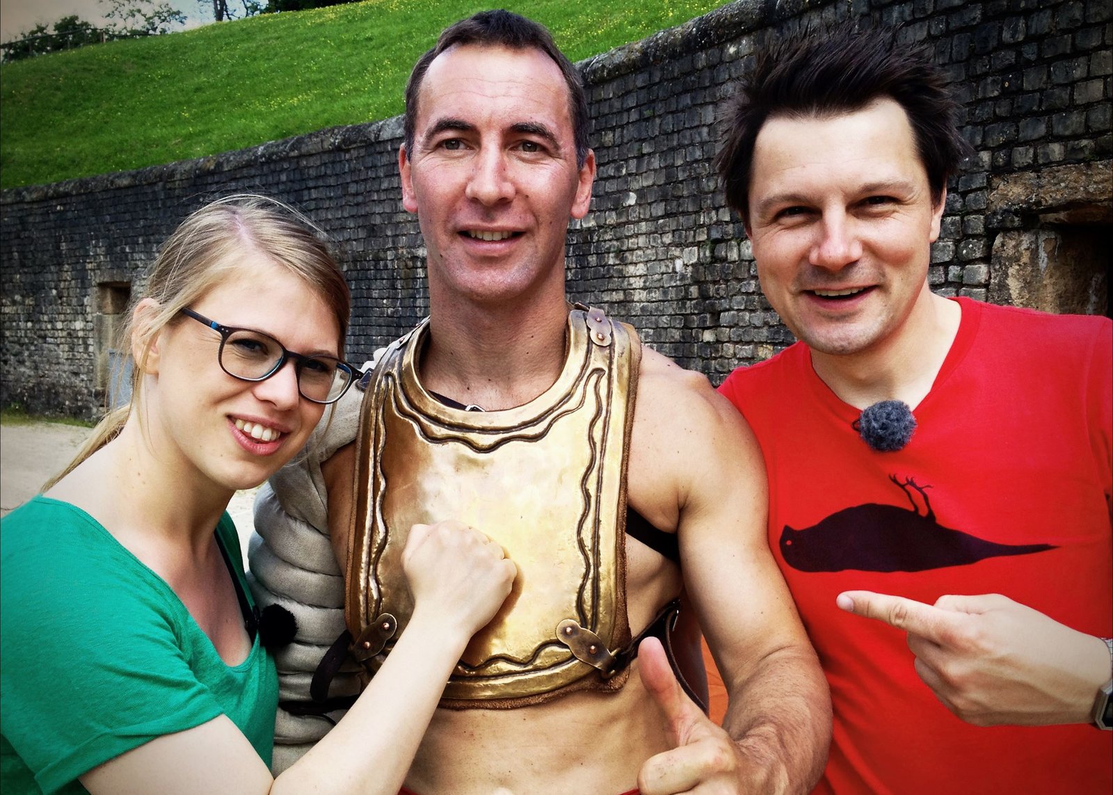 Rheinland-PfalzWDR Fernsehen 2 DURCH DEUTSCHLAND, "Rheinland-Pfalz", am Montag (13.07.15) um 15:00 Uhr. Die Reporter André Gatzke (r) und Esther Brandt (l) sind unterwegs in Rheinland-Pfalz. In Trier begegnen sie im Amphitheater einem (fast) echten Römer.Bild: © WDR/André Gatzke