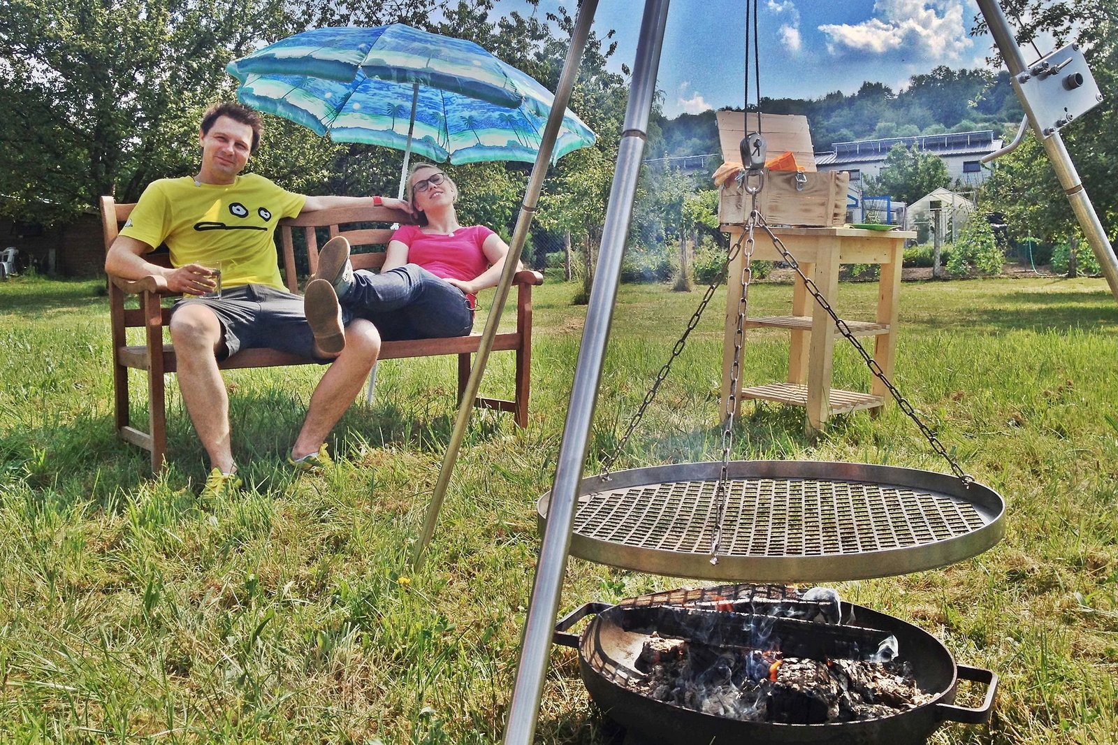 SaarlandReporter André Gatzke (links) und Esther Brandt lernen das Saarland kennen. Hier heißt nicht nur der Grill "Schwenker".Bild: © WDR/WDR/André Gatzke