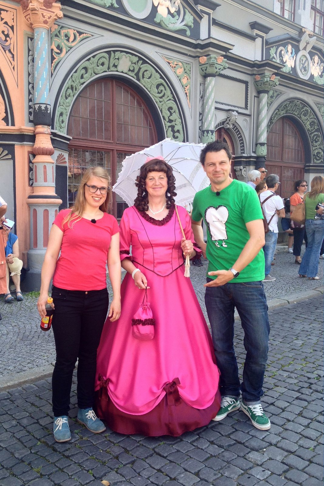 ThüringenWDR Fernsehen 2 DURCH DEUTSCHLAND, "Thüringen", am Freitag (20.03.15) um 07:50 Uhr. Die Reporter Esther Brandt (l) und André Gatzke (r) sind unterwegs in Thüringen. In Weimar treffen sie eine Stadtführerin, die in die Rolle der Anna Amalia schlüpft, einer Herzogin, die im 18. Jahrhundert lebte. Die weltberühmte „Anna-Amalia-Bibliothek“ in Weimar gehört gehört zu den UNESCO-Welterbe-Stätten.Bild: © WDR/André Gatzke
