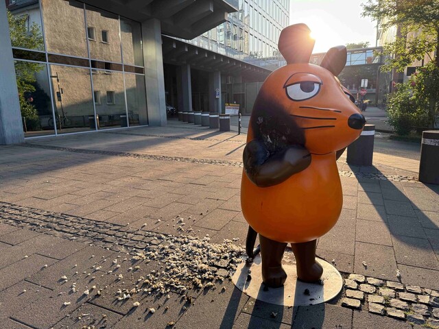 Die Maus wurde durch den Brandschlag am rechten Arm und im Gesicht stark verkohlt. Dies löste eine Welle der Solidarität aus. Viele Familien und Maus-Fans kamen vorbei und versorgten die verletzte Maus mit Pflastern. Kurz darauf verabschiedete sich die Maus "in Kur", um in einer Werkstatt repariert zu werden. Seit Ende August steht sie restauriert wieder auf ihrem angestammten Platz vor dem WDR-Vierscheibenhaus. Der Täter wurde hingegen immer noch nicht gefasst. Ende November veröffentlichte die Polizei Bilder der Überwachungskamera, die einen Tatverdächtigen zeigen.