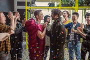 Toni (Matthias Schweighöfer, mitte l.) und Paul (Florian David Fitz, mitte r.)Bild: © Warner Brothers