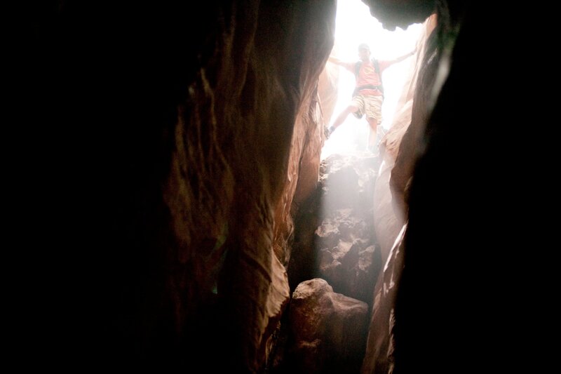 Aron Ralston (James Franco) ist ein erfahrener Climber und Biker, der in seiner Freizeit eine atemberaubende Canyon-Landschaft in Utah durchquert. Auf seinem Trip trifft er auf zwei Frauen, die vom Weg abgekommen sind und sich nun erleichtert Ralston anschliessen. Dieser begleitet die beiden ein Stück durch den Canyon und wird später zu einer Party eingeladen. Nach dem Abschied nimmt Ralston sich vor, eine der Canyon-Spalten zu durchklettern. Bei einer besonders engen Stelle hält er sich an einem Felsbrocken fest, der sich daraufhin löst und zusammen mit ihm nach unten stürzt. Nach kurzem Fall wird Ralstons rechter Arm zwischen dem Felsbrocken und der Canyon-Wand eingeklemmt. Unfähig, sich zu befreien, versucht er vorerst, den Stein zu bewegen. Als dies misslingt, will er den Felsen mit seinem Taschenmesser zerkleinern - ohne greifbares Resultat. Da niemand seinen Aufenthaltsort kennt und er keine Verbindung nach aussen hat, kann er nicht auf Hilfe hoffen. Nach einem Tag stellt er fest, dass seine Hand bereits abgestorben ist.