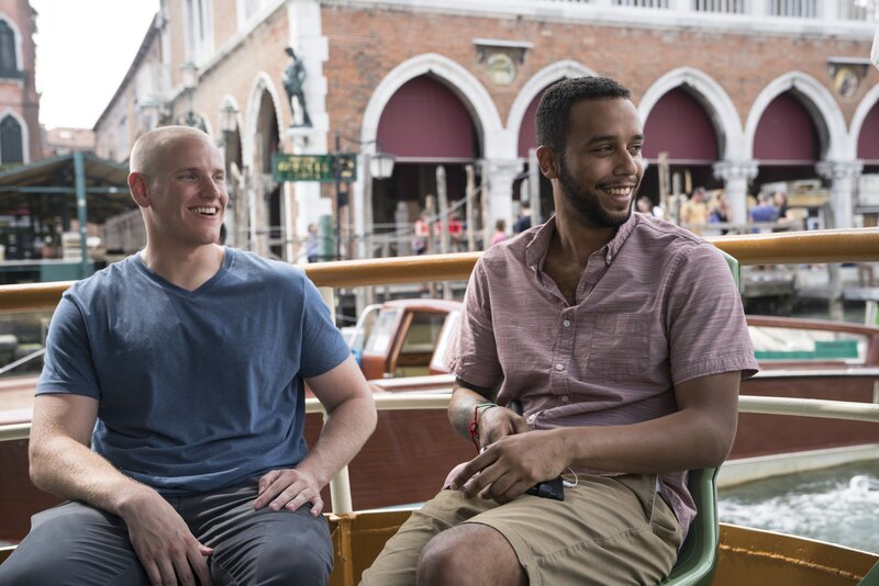 Die Amerikaner Spencer Stone und Anthony Sadler bei einer touristischen Bootstour in Venedig.