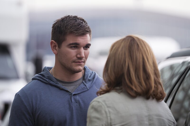 Der junge Amerikaner Alek Skarlatos wird von seiner Mutter Heidi (Jenna Fischer) am Auto vor seinem Abflug zum Kriegseinsatz in Afghanistan verabschiedet.