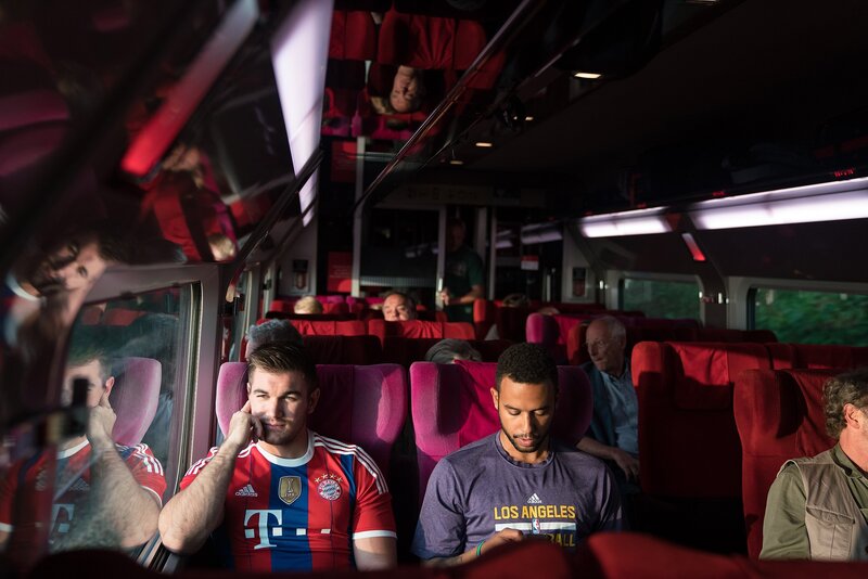 Der Amerikaner Anthony Sadler wartet in Zug auf die Abfahrt nach Paris.