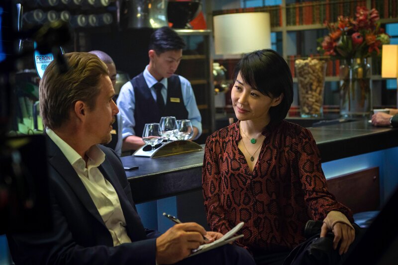Travis Conrad (Ethan Hawke) macht die Bekanntschaft der Interpol-Agentin Lin Bisset (Qing Xu).Bild: © ZDF und Coco Van Oppens