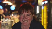 Kaum ein Ort in Berlin hat sich in den vergangenen Jahren so rasant verändert wie der Alexanderplatz. Für die einen ein beliebter Treffpunkt, für andere eher ein Unort. Baustellen prägen sein Gesicht. Über 350.000 Menschen passieren täglich diesen Knotenpunkt mitten in der Stadt. Ein Mikrokosmos zwischen hochfliegenden Träumen und harter Alltagsrealität. - Petra Schreiber–Fischert in der Hafenbar.Bild: © rbb/Steffen Hammerich/DOKFILM