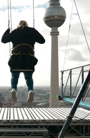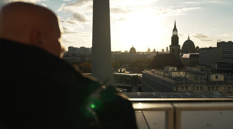 Kaum ein Ort in Berlin hat sich in den vergangenen Jahren so rasant verändert wie der Alexanderplatz. Für die einen ein beliebter Treffpunkt, für andere eher ein Unort. Baustellen prägen sein Gesicht. Über 350.000 Menschen passieren täglich diesen Knotenpunkt mitten in der Stadt. Ein Mikrokosmos zwischen hochfliegenden Träumen und harter Alltagsrealität. - High-Swing auf dem Park Inn Hotel am AlexanderplatzBild: © rbb/Steffen Hammerich/DOKFILM
