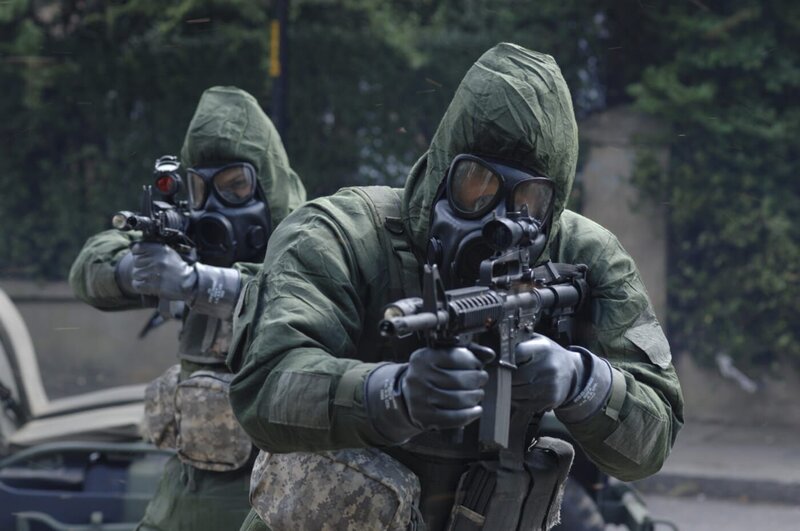 General Stone (Idris Elba, re.) hat die Hoffnung, dass der Virus nicht mehr existiert, doch Major Scarlet (Rose Byrne, li.) ist sich da nicht sicher...