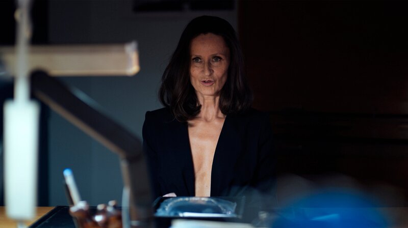 Sagt sie die Wahrheit? Anna (Sophie Rois) muss bei der französischen Polizei aussagen.Bild: © SWR/Komplizen Film/Reinhold Vorschneider