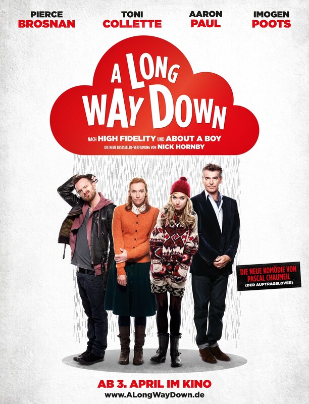 Am Silvesterabend treffen sich auf dem Dach eines Londoner Hochhauses vier Menschen. Sie alle wollen mit einem Sprung in die Tiefe Selbstmord begehen. Ex-TV-Moderator Martin Sharp (Pierce Brosnan) sieht keinen Sinn im Leben, nachdem er Beruf und Familie verloren hat. Maureen (Toni Collette) ist alleinerziehende Mutter eines schwerbehinderten Kindes und fühlt sich den Anforderungen nicht mehr gewachsen. Die Politikertochter Jess wurde von ihrem Freund verlassen, und der Rockmusiker und jetzige Pizzabote J.J. (Aaron Paul) leidet an unheilbaren Krebs. Aber dann beschließen die Vier, ihren Selbstmord zu verschieben. Keiner soll vor dem Valentinstag aus dem Leben scheiden. Die Presse erfährt von diesem ungewöhnlichen Pakt. Mit viel Geld können die Vier dazu überredet werden, ihre Beweggründe öffentlich darzulegen. Mit der Zeit bereuen sie jedoch, zugestimmt zu haben. Martin, Maureen, Jess und J.J. flüchten für eine Woche auf die Urlaubsinsel Teneriffa. Doch je näher der Valentinstag rückt, desto unsicherer werden sie, ob Suizid tatsächlich die richtige Entscheidung ist. Der britische Autor Nick Hornby zählt zu den beliebtesten Schriftstellern unserer Zeit, schon des Öfteren wurden seine Bücher mit großem Erfolg für das Kino adaptiert ("High Fidelity", "About A Boy"). "A Long Way Down" basiert ebenfalls auf einem Roman Hornbys, indem er so ernste Themen wie Depression und Suizid auf eine tiefgründige, aber auch schwarzhumorige Weise behandelt. Regisseur Pascal Chaumeil hat in seiner Tragikomödie diesen bissig-unterhaltsamen Stil beibehalten, unterstützt von hervorragenden Darstellern. Neben Ex-Bond Pierce Brosnan spielen u.a. Toni Collette ("Nightmare Alley") und Aaron Paul, bekannt aus der Erfolgsserie "Breaking Bad". In Nebenrollen: Rosamund Pike und Sam Neill.