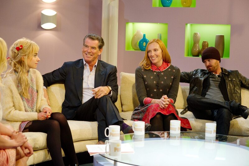 L-R: Martin (Pierce Brosnan), Maureen (Toni Collette), Jess (Imogen Poots) und JJ (Aaron Paul)Bild: © NDOVE / NICOLA DOVE / MKNS