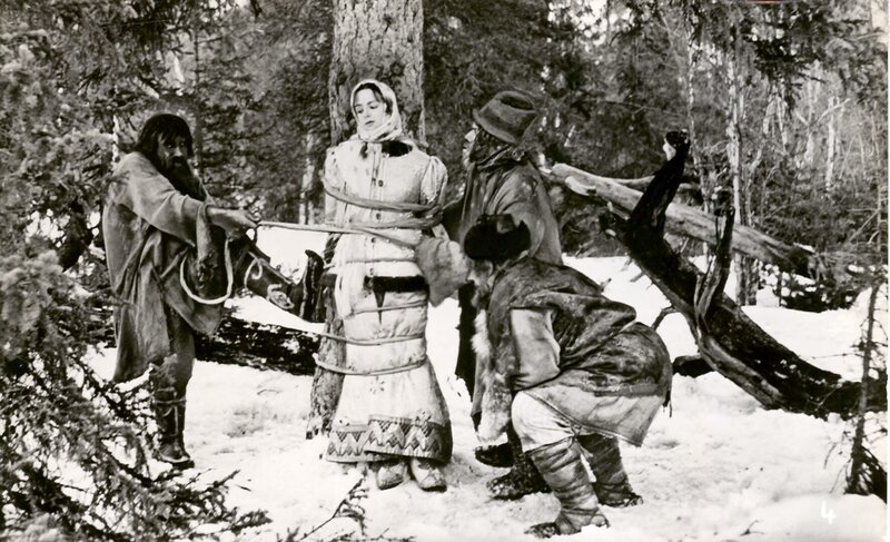 Eines Tages begegnet Nastjenka (Natalja Sedysch) im Wald dem eitlen Iwan, der eine Bärenmutter töten will.Bild: © rbb/MDR/Progress/Gorki-Studio