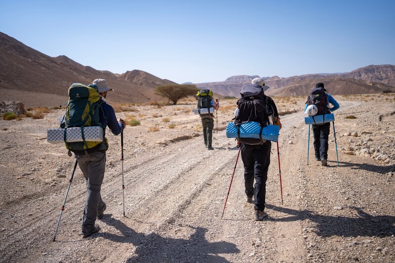Zwei junge Deutsche, Kim und Eike, machen sich auf eine besondere Reise. Zu Fuß wollen sie Israel einmal von Nord nach Süd durchqueren. Auf über 1000 Kilometer windet sich der Weitwanderweg Israel National Trail durch das Heilige Land. Schon am ersten Tag wird klar: Hitze, Durst und schwere Rucksäcke werden zu einer täglichen Herausforderung. Viele junge Israelis wandern den Trail nach Beendigung ihres Wehrdienstes so wie Inbar, Sapir und Dana. Mit ihnen sprechen Eike und Kim darüber, was es bedeutet jüdisch zu sein und warum das nicht nur etwas mit Glauben zu tun hat. Die meisten Wanderer schlafen unter freiem Himmel. Da kann es schon mal passieren, dass man nachts Besuch von Schakalen oder Wildschweinen bekommt. Wer zwischendurch aber das Bedürfnis nach einem Dach über dem Kopf oder einer Dusche hat, kann bei einem sogenannten Trail Angel wie Aliza übernachten. Die Trail Angels wohnen entlang des Fernwanderweges und nehmen für eine Nacht Wanderer bei sich auf. Aliza hat elf Kinder, kinderreich ist bei vielen orthodoxen Familien üblich. Da die meisten aber nicht mehr zu Hause wohnen, ist Platz für Wanderer. Vieles in Alizas Leben ist von der Religion bestimmt. Und so lernen Kim und Eike zum Beispiel die Regeln der koscheren Küche kennen. In Jerusalem und Bethlehem wird der im Land schwelende Konflikt vor allem in den Gesprächen mit Palästinensern offensichtlich. Der letzte Teil der Reise führt durch die Wüste Negev. Schnell wird klar, hier warten die größten Herausforderungen des Trails: lange Tagesetappen ohne Möglichkeit, Wasser aufzufüllen, durch starke Regenfälle ausgelöste Sturzfluten oder Canyons, in denen man die schweren Rucksäcke über Strickleitern steile Wände nach oben tragen muss. Sogar hier in der Einsamkeit treffen Eike und Kim auf ganz besondere Menschen wie Idan, der aus Sorge, die beiden könnten in eine Sturzflut geraten sein, extra wieder einen Berg hochgeklettert war. Oder Hillel, der mit einem Tattoo des Eingangstors von Auschwitz und des Judensterns an das Schicksal seiner Großmutter erinnert. Am Roten Meer angekommen resümieren die beiden: Israel ist ein Land, dessen Landschaft kaum vielfältiger und beeindruckender sein könnte. Und doch sind es vor allem die Begegnungen mit den Menschen, die diese Reise so besonders gemacht haben.