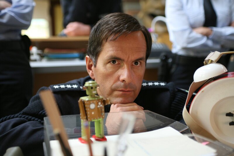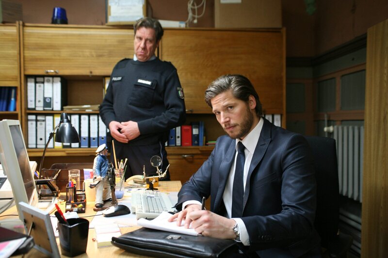 Für Broich (Uwe Rohde, l.) ist die Sache glasklar: Betriebsprüfer Joachim Kersten (Sebastian Ströbel, r.) ist nur deshalb auf dem Revier, um die kleine Polizeistation dichtzumachen. Das muss mit allen Mitteln verhindert werden ...