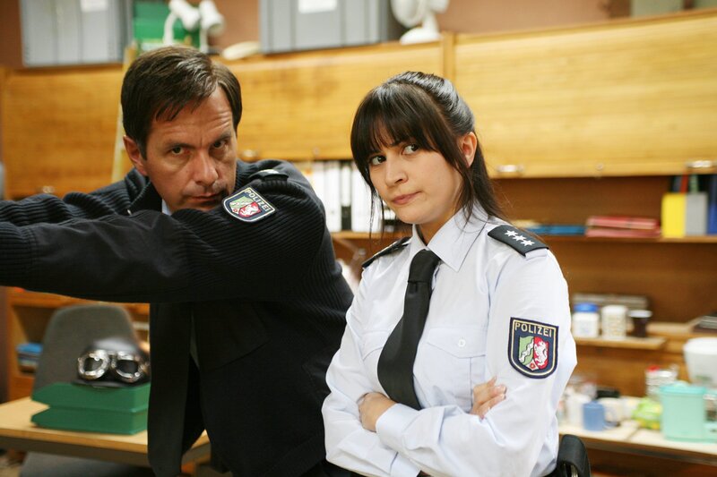 Außer Rick (Christoph Maria Herbst, l.) ahnt niemand auf dem Revier, dass die unangekündigte Betriebsprüfung mit Revierleiterin Carla (Lisa Maria Potthoff, r.) zu tun hat. Denn diese hat ohne Wissen der Kollegen ihre Versetzung zur Kripo angefragt ...