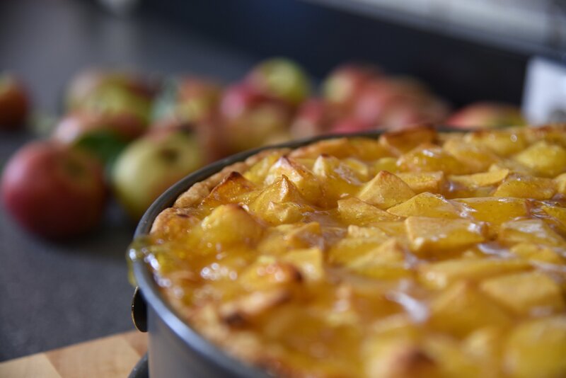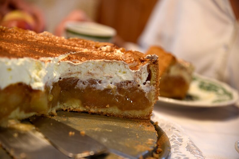 Die Apfel-Weintorte, die mit den hauseigenen Äpfeln gebacken wird, ist eine Spezialität von Margarita Huber, der Chefin vom Anderlbauer in Frasdorf.Bild: © ORF/Produktion West/Gerhard Mader