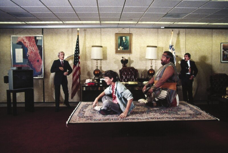 Aladin (Luca Venantini, l.), Genie (Bud Spencer, 2.v.r.), Polizeichef (Umberto Raho, r.)Bild: © MG RTL D / METRO-GO