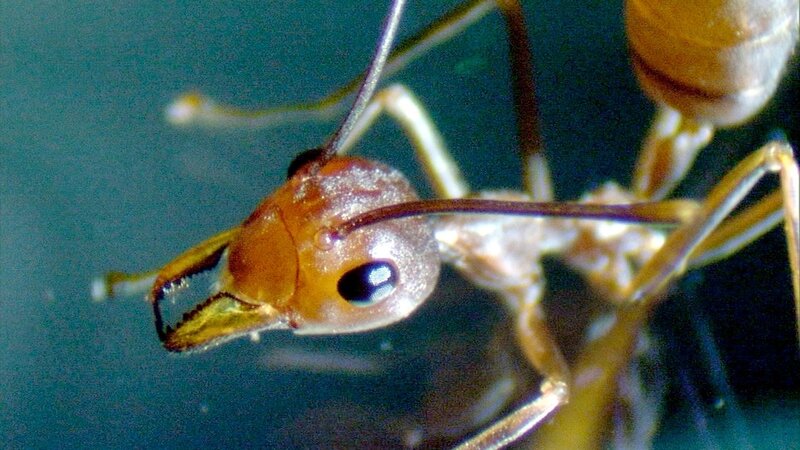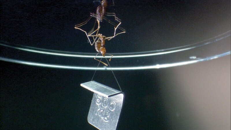 NDR Fernsehen ABENTEUER ERDE, "Ameisen - Die heimliche Weltmacht", am Mittwoch (28.04.10) um 11:30 Uhr. Ameisen können das 100fache ihres Körpergewichts tragen. - Ameise mit einem 500mg-Gewicht