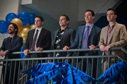 Stifler (Seann William Scott, M.) hat für seine alten Freunde Kevin (Thomas Ian Nicholas, l.), Jim (Jason Biggs, 2.v.l.), Oz (Chris Klein, 2.v.r.) und Finch (Eddie Kaye Thomas, r.)Bild: © Universal Pictures / Peter "Hopper" Stone