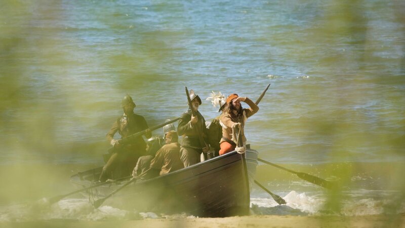 Amerigo Vespucci (Michele Guidi, l.) erkundet mit Helfern (Komparsen) den neuen Kontinent.Bild: © Thomas Bresinsky / ZDF