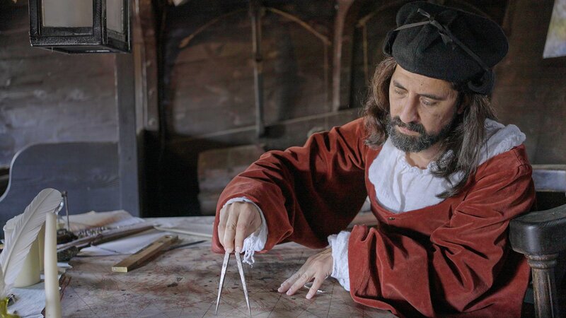 Amerigo Vespucchi (Michele Guidi) schreibt sein bahnbrechendes Werk "Mundus Novus" (Neue Welt), in dem er feststellt, dass er einen bisher unbekannten Kontinent entdeckt hat.Bild: © Thomas Bresinsky / ZDF