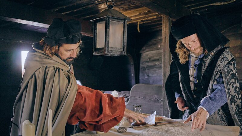 Amergio Vespucci (Michele Guidi, r.) ließ sich von den Fahrten seines Freundes Christoph Kolumbus (Pedro Alvarez Molina, l.) inspirieren.Bild: © ZDF/Thomas Bresinsky
