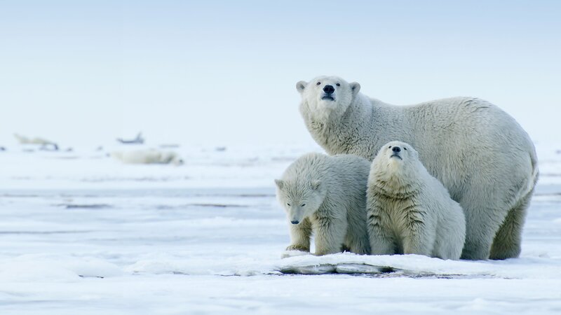 Eisbären-Mutter mit Jungen. +++ Die Verwendung des sendungsbezogenen Materials ist nur mit dem Hinweis und Verlinkung auf RTL+ gestattet. +++Bild: © RTL / Tom Campion Foundation/ Terra Mater Factual Studios GmbH / Florian Schulz