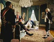 Von links stehend: General Georg August Freiherr von Kinkel (Günther Maria Halmer), Kronprinz Ludwig von Bayern (Max von Thun), König Maximilian I. von Bayern (Ottfried Fischer, sitzend) im Gespräch mit Napoleon I. Bonaparte, Kaiser von Frankreich (Gustav- Peter Wöhler, sitzend, von hinten) und Maximilian Josef Freiherr von Montgelas (Michael Schönborn).