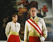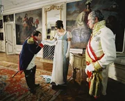 Napoleon I. Bonaparte (Gustav-Peter Wöhler) umwirbt Marie Luise von Habsburg (Sarah Jung), die Tochter von Kaiser Franz I. von Österreich (Christian Futterknecht, von links).