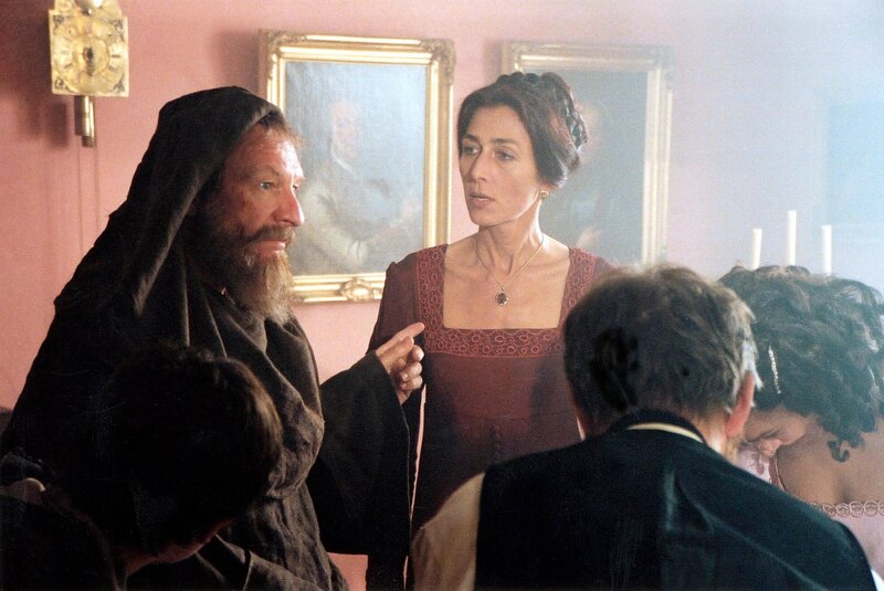 Pater Joachim Haspinger (Franz Xaver Kroetz, links) weist die Frau des Innsbrucker Bürgermeisters (Katharina Welser, Mitte) zurecht.