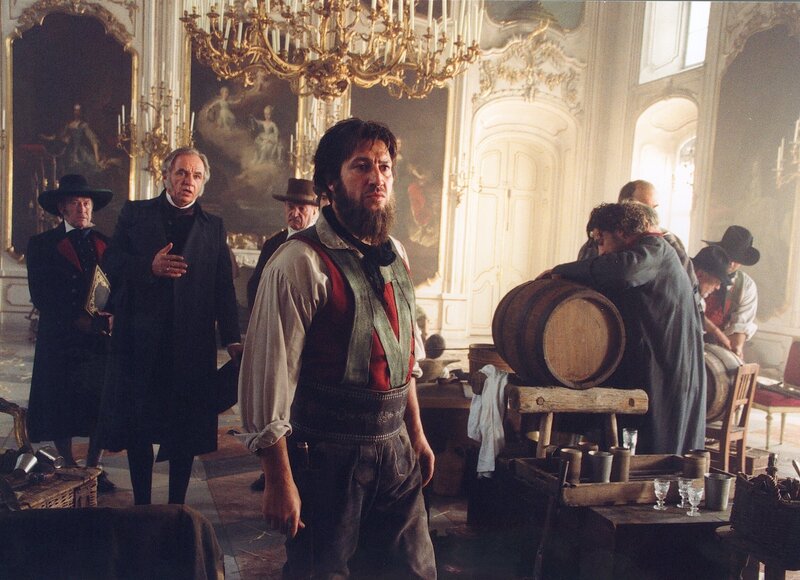 Der Innsbrucker Bürgermeister Kasimir Schumacher (Toni Böhm, 2. von links) ist fassungslos angesichts der plündernden Bauern um Andreas Hofer (Tobias Moretti, Mitte).