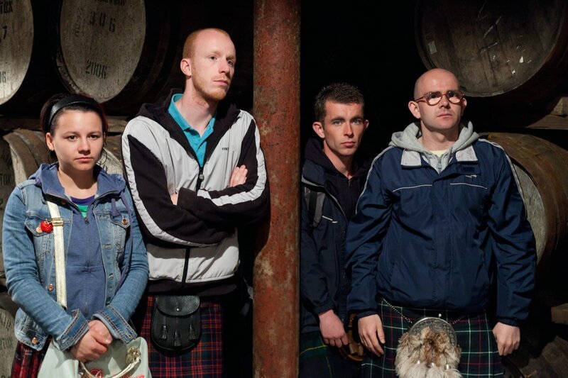 Der Betreuer Harry lädt die Gruppe zu einem Ausflug zu einer Whisky-Destillerie ein. Robbie (Paul Brannigan, 2. von rechts) und seine Weggefährten - Mo (Jasmin Riggings, links), Rhino (William Ruane, 2. von links) und Albert (Gary Maitland) - erhalten dadurch einen Einblick in die Welt der schottischen Single Malt Whiskys. Bei einem Whisky-Tasting in Edinburgh beweist Robbie erstaunliche Fähigkeiten bei der Verkostung des edlen Getränks.