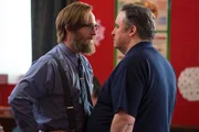 Der herrschsüchtige Direktor Savage (Paul Kaye, l.) drangsaliert Annas Vater Tony (Mark Benton, r.) fast ständig.Bild: © Duncan McCallum / ZDF