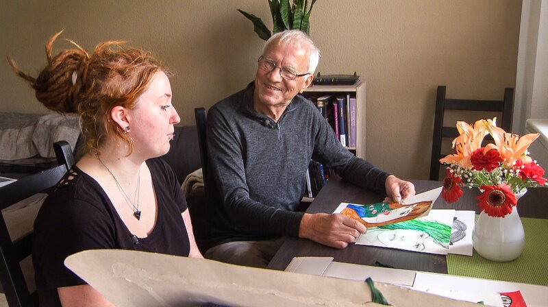 Anna mit Peter Löwe - der Kurator ihrer AusstellungBild: © MDR/Werkblende