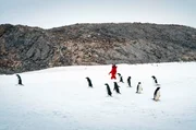 Blick auf die Forschungsstation in Adélieland, wo Wissenschaftlerinnen und Wissenschaftler aus der ganzen Welt zusammenkommenBild: © ARTE F / YUZU Productions
