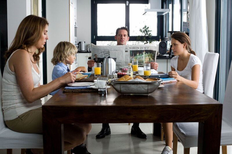 Schon seit langem läuft einiges ziemlich falsch bei den Burghardts (v.l.n.r.: Elena Uhlig, Filippo Kreindl, Max Tidof und Carina Diesing). Denn Oberhaupt Max hat sämtliche Pflichten des Familienlebens erfolgreich auf seine Frau abgewälzt, amüsiert sich stattdessen mit anderen. Da muss seine Frau für einige Wochen ins Krankenhaus ...