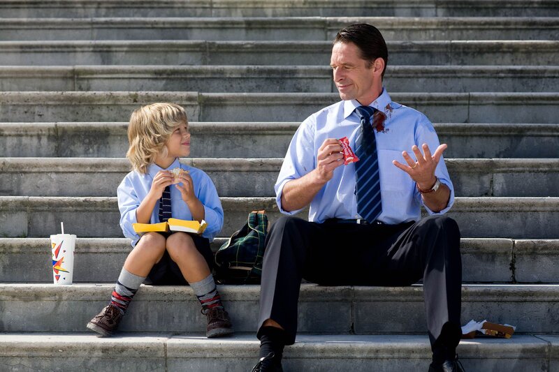 Der kleine Benny (Filippo Kreindl, l.) amüsiert sich königlich darüber, dass Papa (Max Tidof, r.) nicht einmal Ketchup-Tütchen öffnen kann, ohne sich zu bespritzen. Doch das Glück, seinen Papa mal ganz für sich zu haben, soll nicht lange andauern, denn dieser will ein Kindermädchen engagieren ...