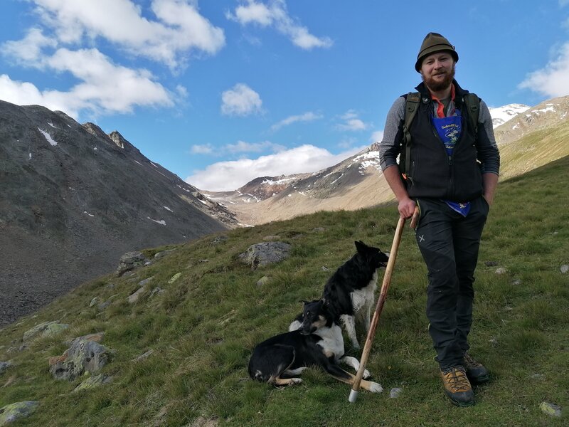 Zum ersten Mal ist der 24jährige Südtiroler Manuel Götsch in diesem Jahr Oberhirte im österreichischen Ötztal und für 1.500 Schafe verantwortlich. Den Sommer über begleiten ihn seine beiden Hütehunde Fox und Kranzi. Auf 6.000 Hektar sind die Schafe verstreut im unwegsamen alpinen Gelände. Jeden Tag müssen Manuel und seine vierbeinigen Helfer nach ihnen schauen.Bild: © Brigitte Kornberger / BR