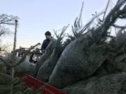 Erntezeit in Palling bei Trostberg. In der Weihachtsbaumkultur von Harkus Huber werden frisch geschnittene Bäume verladen.Bild: © BR/Matti Bauer
