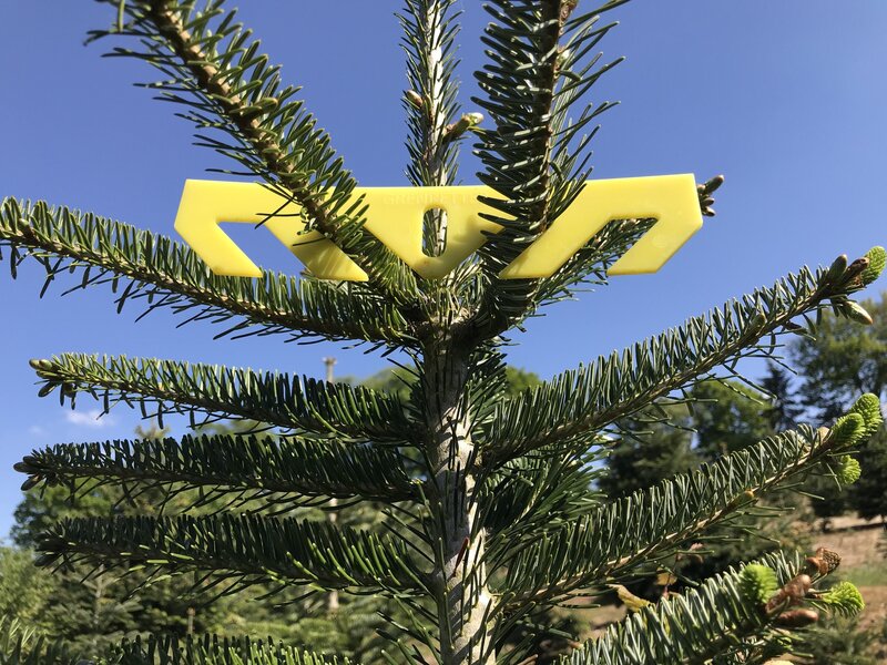 Regelmäßiger Wuchs ist das Ziel jedes Christbaumanbauers. Ein Weihnachtsbaum mit Klammer.Bild: © BR/Matti Bauer