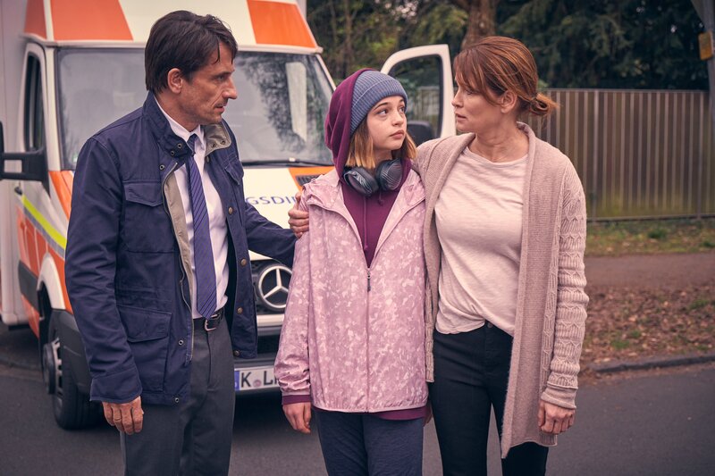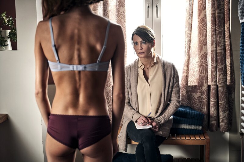 Hungern bis zur Ohnmacht, ein verzerrtes Selbstbild, strenge Selbstkontrolle, zwanghafte körperliche Aktivität, übertriebener Perfektionismus: Die Symptome einer Magersucht treten oft schleichend in den Alltag Betroffener. Als solche erkannt werden sie meist erst dann, wenn die Krankheit nicht mehr zu leugnen ist. Es folgt ein schwerer Weg zurück in die Normalität. In "Aus Haut und Knochen" (AT), dem neuen SAT.1-Themenfilm, der derzeit in Köln und Umgebung gedreht wird, durchlebt Anja Kling als Mutter einer 16-jährigen Tochter ein solches Szenario: Als sie erkennt, dass ihre Tochter Lara (Lisa-Marie Koroll) nicht nur schlank, sondern krankhaft dünn ist, beginnt für die Familie ein langer und anstrengender Weg: Von der eigenen Akzeptanz der schweren Krankheitsdiagnose zurück in ein halbwegs geregeltes Alltagsleben. "Aus purer Hilflosigkeit und Verzweiflung werden alle Hilfsversuche zur erdrückenden Qual für die ganze Familie. Die ‚Fehler', die meine Rolle hier macht, kann ich, selbst Mutter einer fast 15-jährigen gesunden Tochter, durchaus nachempfinden", zeigt sich Anja Kling mitfühlend und unterstreicht: "Es würde mich freuen, wenn wir mit dem Film nicht nur wiederholt auf diese schlimme und sich oft unmerklich anschleichende Krankheit aufmerksam machen, sondern auch ein bisschen Hilfestellung im Umgang mit ihr leisten können." Anja Klings Filmtochter Lisa-Marie Koroll machte die eigene Essstörung, unter der sie als 16-Jährige litt, 2017 öffentlich. Heute hat sie diese überwunden: "Mittlerweile habe ich so einen Abstand dazu, dass es für mich keine Gefahr mehr ist. Ich weiß, dass ich durch diese Rolle nicht wieder anfange, an mir selbst zu zweifeln," erklärt die 21-Jährige und betont: "Mir ist es wichtig zu zeigen, was für einen Kampf betroffene Mädchen tagtäglich mit sich selbst führen und dass der größte Gegner eigentlich sie selbst sind." Ergänzt wird die Film-Familie durch Oliver Mommsen als Laras Vater Peter und Vico Magno als Laras Bruder Jonas. Regie bei "Aus Haut und Knochen" (AT) führt Christina Schiewe, das Buch schrieb Burkhardt Wunderlich. Produzenten sind Sam Davis und Kim Fatheuer (Rowboat Film- und Fernsehproduktion GmbH), die SAT.1-Redaktion liegt bei Patrick Simon. "Aus Haut und Knochen" (AT) ist ein weiterer SAT.1-Film der Themenfilm-Reihe, die damit gesellschaftlich relevante Stoffe zum Gegenstand der öffentlichen Diskussion machen will.