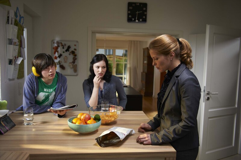 Marie (Valerie Niehaus, r.) ist Mutter und Hausfrau - bis zum tragischen Unfalltod ihres Mannes: Nun muss sie allein für zwei pubertäre Kinder (Gabor Schreindorfer, l., Maria Ehrich, M.) sorgen. Zum Glück war ihr Mann erfolgreicher Unternehmer - glaubt Marie ...