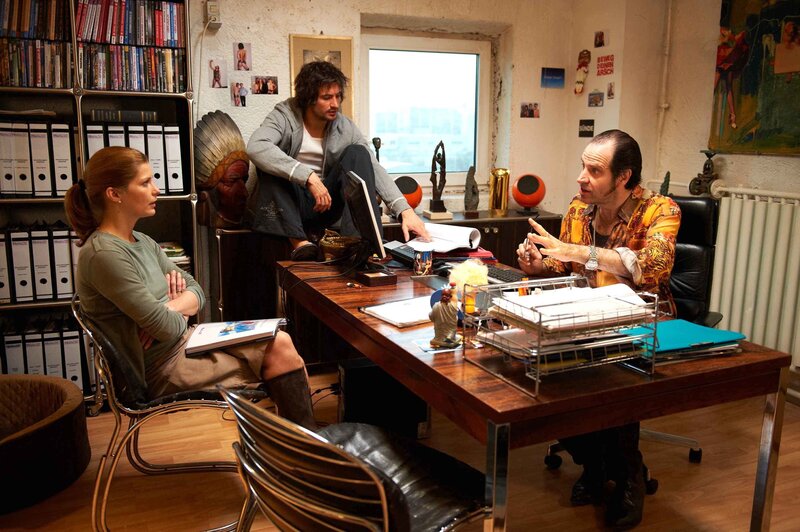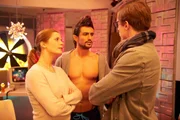 Bereits am ersten Tag wird Regisseur Volker (Helmfried von Lüttichau, r.) und Pornostar Roy, das Rohr (Tom Beck, M.) klar, dass die Besitzerin wider Willen von "MarieX", Marie (Valerie Niehaus), voller Vorurteile gegenüber Pornos und Pornodarstellern ist ...